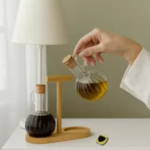 - 🌿 استند بامبو طبیعی: پایه بامبو مقاوم و زیبا که بطریها را منظم و شیک روی میز یا کابینت نگه میدارد