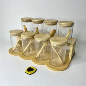 جنس بدنه این ظروف معمولاً از شیشه یا سرامیک با کیفیت بالا ساخته شده و درب آنها از چوب طبیعی بامبو طراحی میشود. ظاهر ساده و مینیمال این ستها، فضای آشپزخانه را منظمتر و شیکتر نشان میدهد.