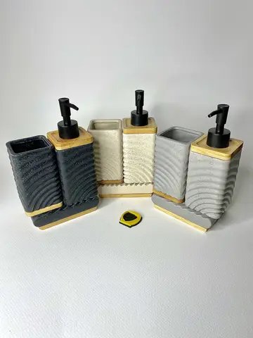 - تعداد اقلام: ۳ پارچه (جا مایع، جا صابون، جا مسواک)