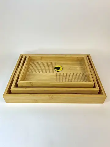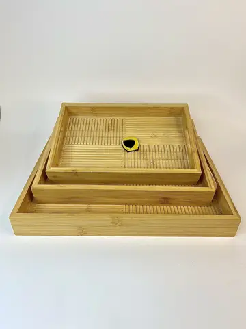 با طراحی خطدار و ابعاد متنوع، ست سینی بامبو مستطیل خط دار 3 سایز بهراحتی با سایر انواع سینی بامبو و ظروف چوبی ست میشه.