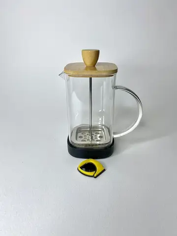فرنچ پرس مربع زیر سیلیکونی 600 میل یکی از آن محصولاتیست که هم از نظر ظاهری دلرباست و هم از نظر کاربردی، کاملاً حرفهای. فرم خاص مربع با پایه سیلیکونی مشکی، نه تنها باعث ثبات بیشتر روی سطوح میشود، بلکه جلوهای مدرن و شیک به آشپزخانه شما میبخشد. این فرنچ پرس از پیرکس مقاوم و شفاف ساخته شده و دسته آن نیز از جنس همان پیرکس است؛ خوشدست، سبک و مقاوم. درب این محصول از بامبو طبیعی ساخته شده که حس لطافت چوب و گرمای طبیعت را هنگام استفاده به شما منتقل میکند. فرم مربع، یک مزیت ویژه در این مدل است؛ زیرا فضای داخلی بیشتری فراهم کرده و باعث میشود تا دمنوشها یا قهوه با راحتی بیشتری دم بکشد.