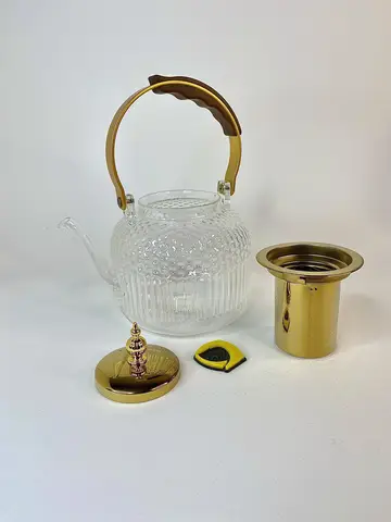 🔗 قوری پیرکس تپل شیاردار دسته طلایی 1000 میل