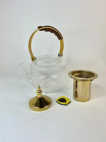 طراحی این قوری، برگرفته از سبک مینیمال مدرن است. بدنهی قوری از شیشه پیرکس مقاوم ساخته شده که در برابر حرارت مقاوم بوده و مناسب دمآوری مستقیم روی شعله کم یا استفاده با وارمر قوری پیرکس میباشد. دسته طلایی رنگ که با جزئیات ظریف و ظاهری چشمگیر طراحی شده، بخشی از آن از متریال نسوز با طرح چوب است تا ایمنی و زیبایی را همزمان ارائه دهد. شیارهای ظریف روی بدنه حس لوکسبودن را تقویت میکنند. اگر به دنبال خرید قوری پیرکس هستید که هم زیبا باشد، هم کاربردی، این مدل یکی از جدیدترین و خاصترین گزینههای بازار محسوب میشود.