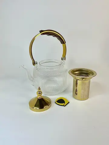 💎 مشخصات قوری پیرکس تپل شیاردار دسته طلایی 800 میل