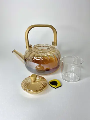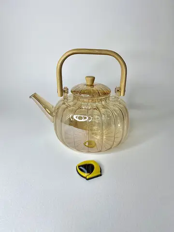 ✨ طراحی شگفت‌انگیز و چشم‌نواز قوری پیرکس کدویی شامپاینی دسته بامبو 1500 میل