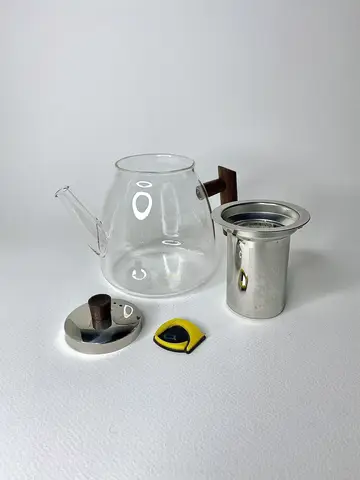 قوری پیرکس گرد تپل دسته چوبی تیره از شیشهی مقاوم پیرکس ساخته شده است؛ جنسی که در برابر حرارت شعله مستقیم کاملاً مقاوم است و طعم و رنگ چای یا دمنوش را حفظ میکند. فرم گرد و تپل قوری، باعث گردش بهتر آب و عصارهگیری بیشتر از چای میشود، در حالی که دستهی چوبی تیره آن، حس لوکس بودن را به کاربر منتقل میکند. مهمتر از همه، این قوری دارای صافی استیل ضدزنگ باکیفیت است که اجازه میدهد چای یا دمنوش بهراحتی درون آن دم بکشد بدون اینکه برگ یا تفاله وارد فنجان شود.