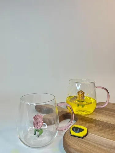 نوشیدن دمنوش در این لیوان با گل رز داخلی احساس متفاوتی دارد.
