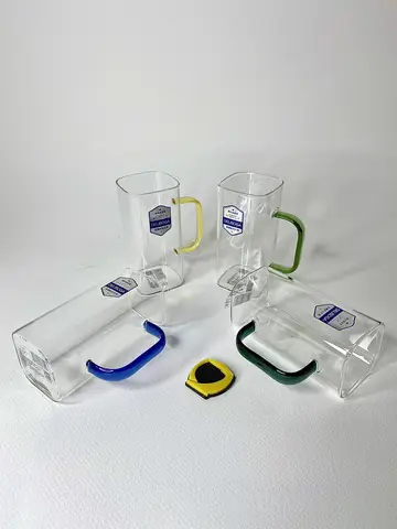 🥇 خرید لیوان پیرکس مربعی بلند دسته رنگی 4 عددی – زیبایی و کارایی در یک محصول