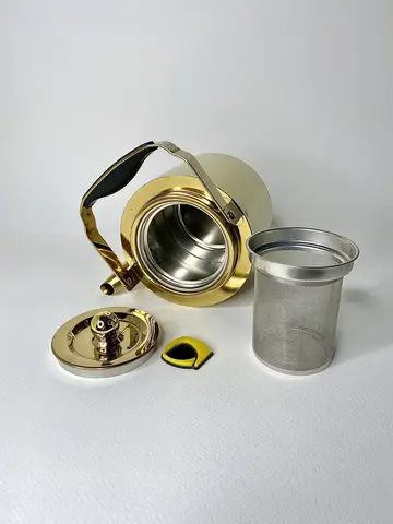 نگاهی به عکس کتری طلایی کافی است تا مجذوب طراحی خاص آن شوید. فرم استوانهای با درب طلایی، توری داخلی و دستهی خوشفرم فلزی، این محصول را به یکی از خاصترین انواع ظروف استیل طلایی بازار تبدیل کرده است. حتی اگر صرفاً برای دکور یا سرویس پذیرایی بخواهید، این کتری انتخابی بینقص است.