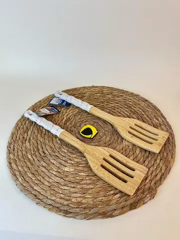 کفگیر شیاردار چوبی دسته سرامیکی ماربل سفید